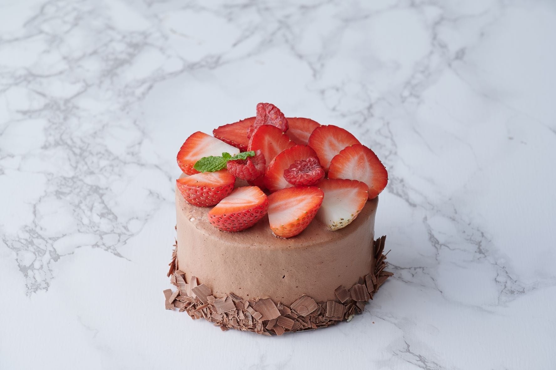 トップにはラズベリーマカロンやベリー、チョコレートタブレットをデコレーションし、見た目にも可愛らしく仕上げました。