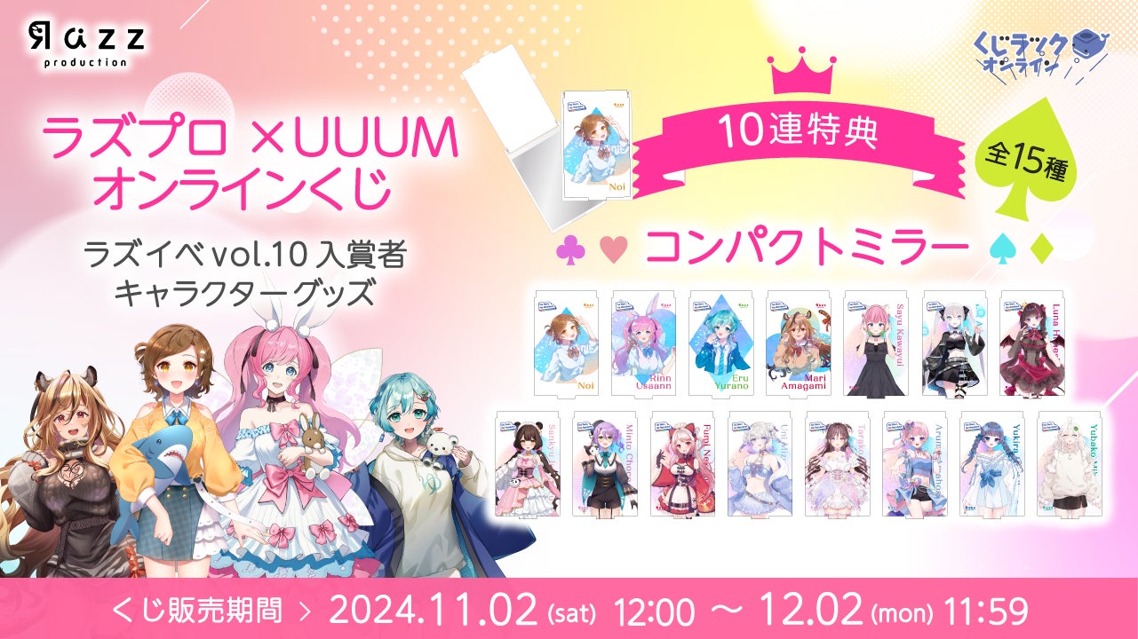 Razzプロダクション×UUUMコラボ企画「ラズイベvol.10」入賞者キャラクターグッズが「くじラックオンライン」に登場!2024年11月2日(土)より発売開始!
