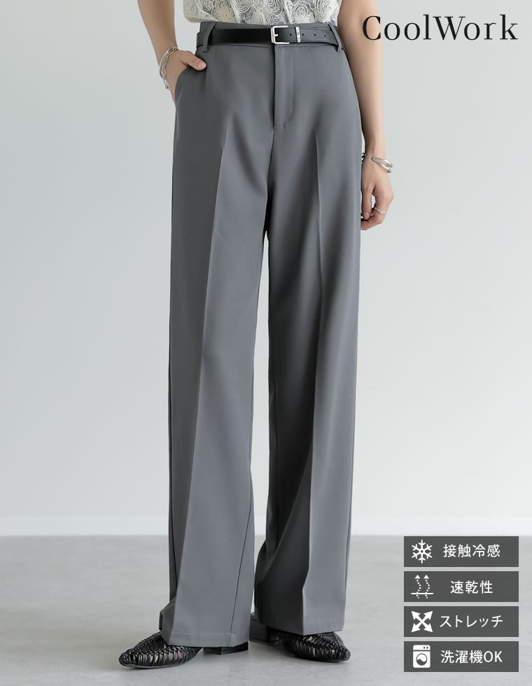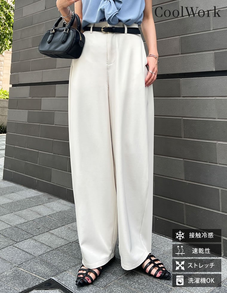 [CoolWork][接触冷感][低身長/高身長サイズ有]冷感ツイルバレルレッグパンツ