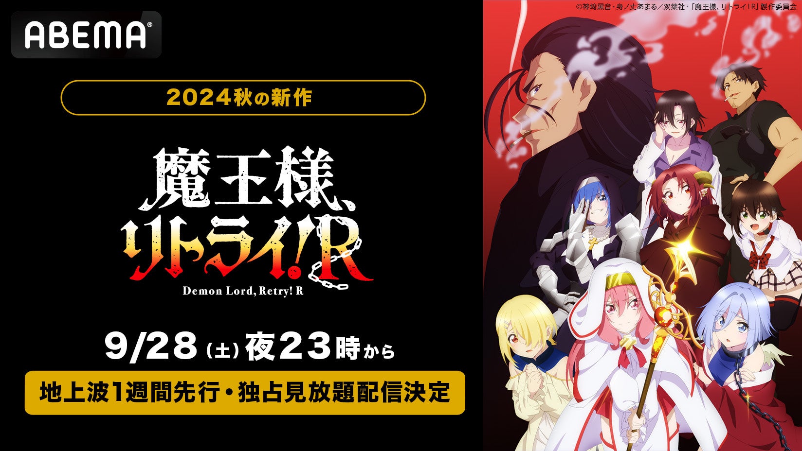 新しい未来のテレビ「ABEMA」は、新作秋アニメ『魔王様、リトライ!R』を、2024年9月28日(土)から毎週土曜日夜23時より地上波1週間先行・独占見放題配信いたします。