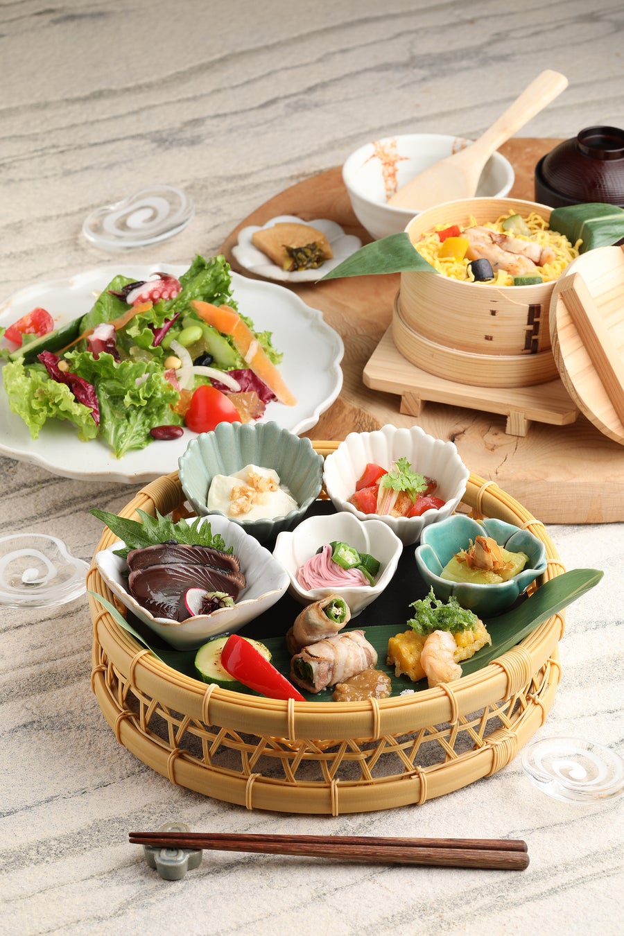 「あえん」では、産地応援の取り組みとして、各地の季節感のある食材を活用しています。夏メニューでは、夏バテの解消や代謝の促進などにも効果があるといわれている栄養素が豊富な、旬の夏野菜を活用したメ ニューや、長崎や高知、福島といった様々な産地の食材をご提供します。