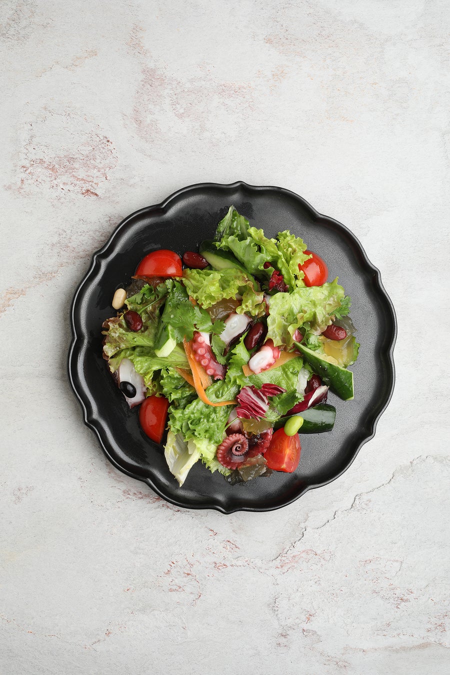 柔らかな触感と旨みが特徴の、相馬で水揚げされたやなぎだこと、夏野菜たっぷりのサラダです。酸味のバランスが調和したドレッシングでお召し上がりください。