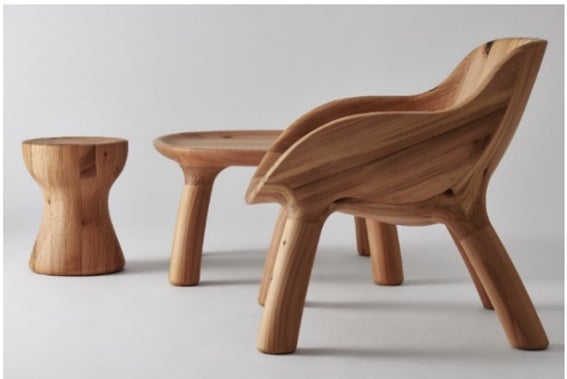 ⾶騨を代表するブランド「HIDA」が100周年を記念して、彫刻家・三沢厚彦氏とコラボレーションした作品「SHINRA(森羅)」。⽊材を集積した塊から削り出された独特の存在感と、まるで動物のような有機的なフォルムが特⻑です。