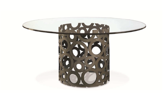 150年以上の歴史を誇る松岡家具製造による海外デザイナーを起⽤したブランド「MATSUOKA」。大小の円を繋ぎ合わせたベースはシャンパンの泡が持つ軽さと複雑さをコンセプトにデザインされました。表⾯の鏡⾯仕上げのシカモアと、内側のエナメルラッカー塗装の合板によるコントラストや、床に落ちる影に遊び心を感じさせるテーブルです。