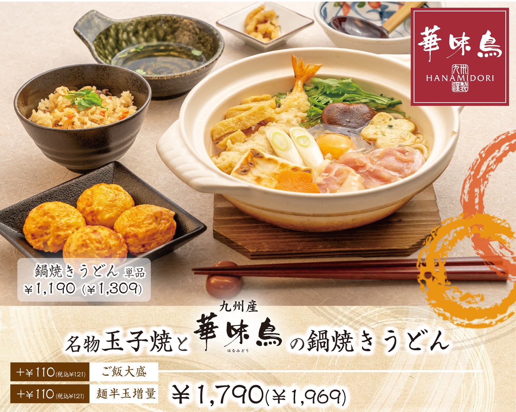 博多華味鳥を使用したひまわり人気の鍋焼きうどんも好評発売中!