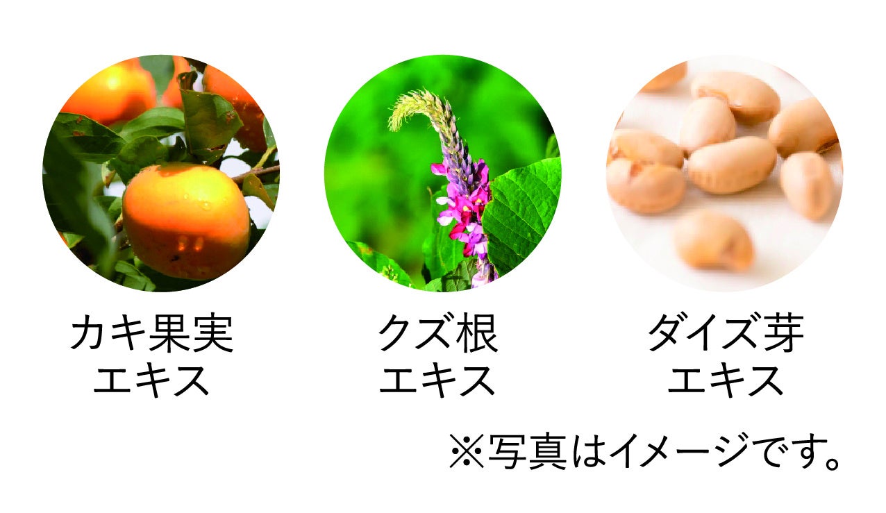 ※2 カキ果実エキス、クズ根エキス、ダイズ芽エキス、フランスカイガンショウ樹皮エキス、チンピエキス、マヨラナ葉エキス、カルノシン、チャ葉エキス、酒粕エキス、トウミツ、モウソウチクたけのこ皮エキス、ゴボウ根エキス