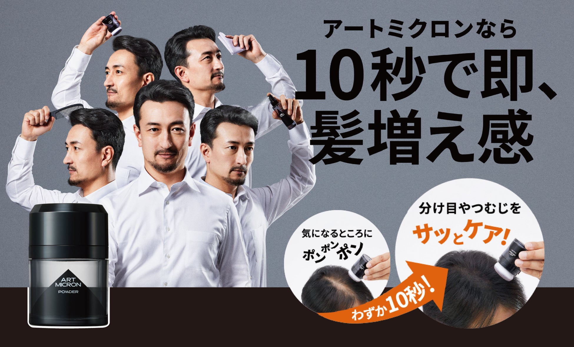 髪のボリュームや薄毛が気になる方のための、「簡単・素早く・自然」に仕上がる増毛パウダーとして、テレビ通販、自社通販サイトでの販売を中心に、これまでのシリーズ累計販売本数が160万本※1を超えるロングセラーを記録しています。