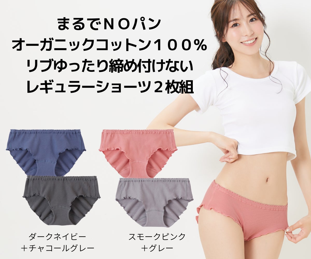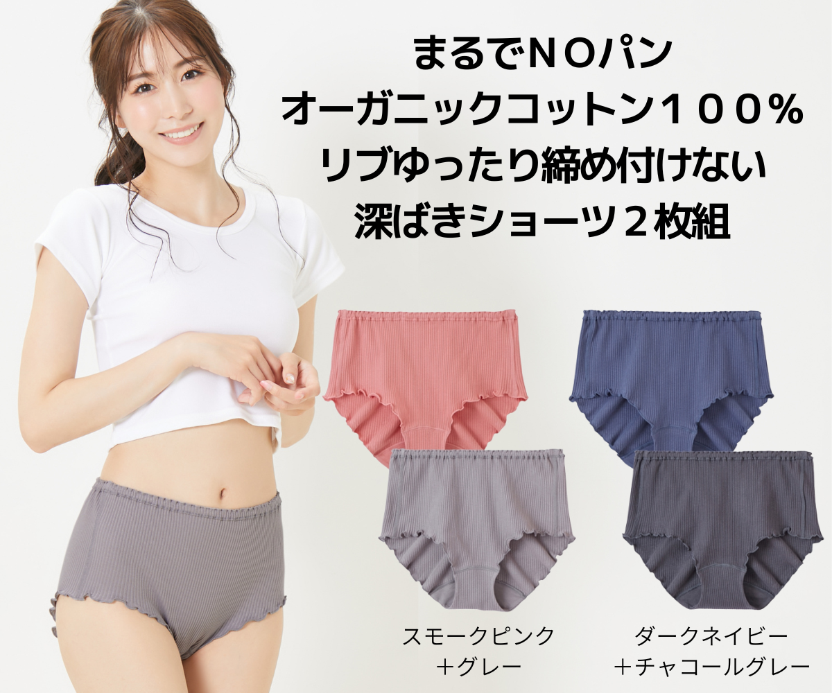 商品名 : まるでNOパン オーガニックコットン100%リブゆったり締め付けない深ばきショーツ2枚組(ウエストゴム取り替え可)