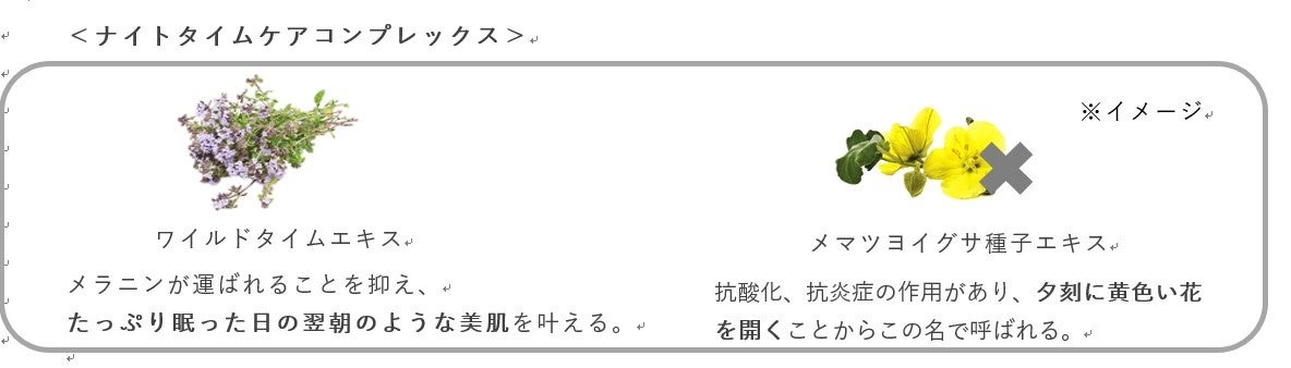 スペシャルケアなのに、塗って寝るだけのシンプルな使用方法。それが叶うのは、夜塗って寝るだけで、眠っている間に肌をうるおす保湿成分、“ナイトタイムケアコンプレックス※6”をシリーズ共通で配合しているから。日中ダメージを受けたお肌を整えうるおい補給し、保護します。