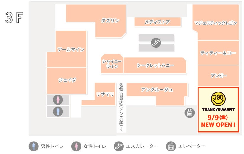 今年でオープンから6年を迎える「サンキューマート名古屋近鉄パッセ店」が移店オープンいたします。6Fから3Fエレベーター前の移転となりアクセスが非常に良くなります。