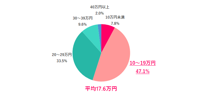 Q.1で60歳以上の年齢を回答した人に、60歳以降は月あたりどのくらい稼ぎたいか尋ねると、1位「10~19万円」47.1%、2位「20~29万円」33.5%、3位「30~39万円」9.6%でした。平均は17.6万円で、Q.2のように週3~4日働くのだとすれば、妥当な金額と言えそうです。