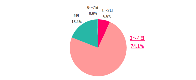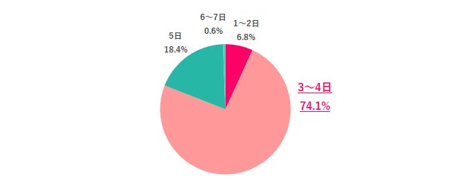Q.1で60歳以上の年齢を回答した人に、60歳以降は週何日くらい働きたいと思うか尋ねると、「3~4日」が74.1%と圧倒的1位でした。60歳以降は少しペースを落として働きたいと考えている人が多いようです。