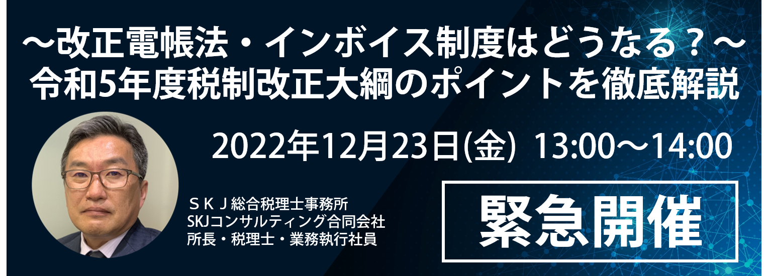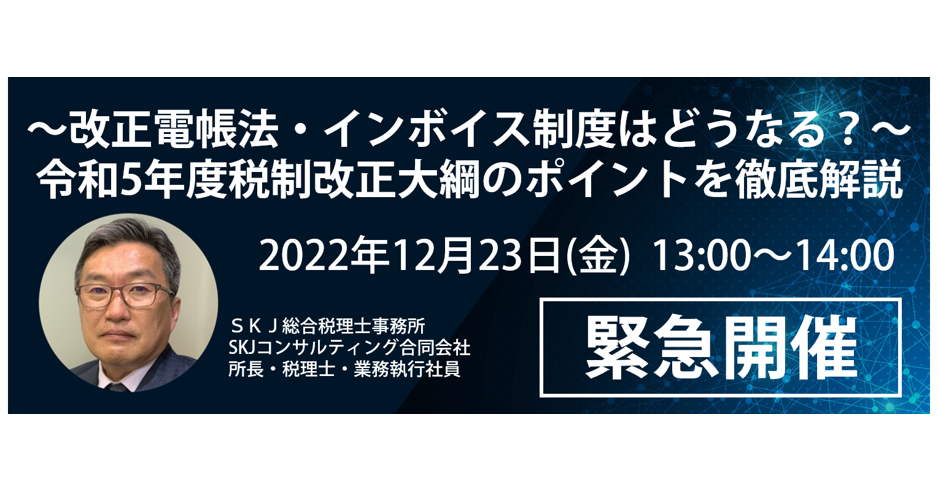 【12/23(金)に緊急開催】~ 改正電帳法・インボイス制度はどうなる? ~ 国税OBの税理士、袖山氏が『令和5年度税制改正大綱』のポイントを徹底解説!