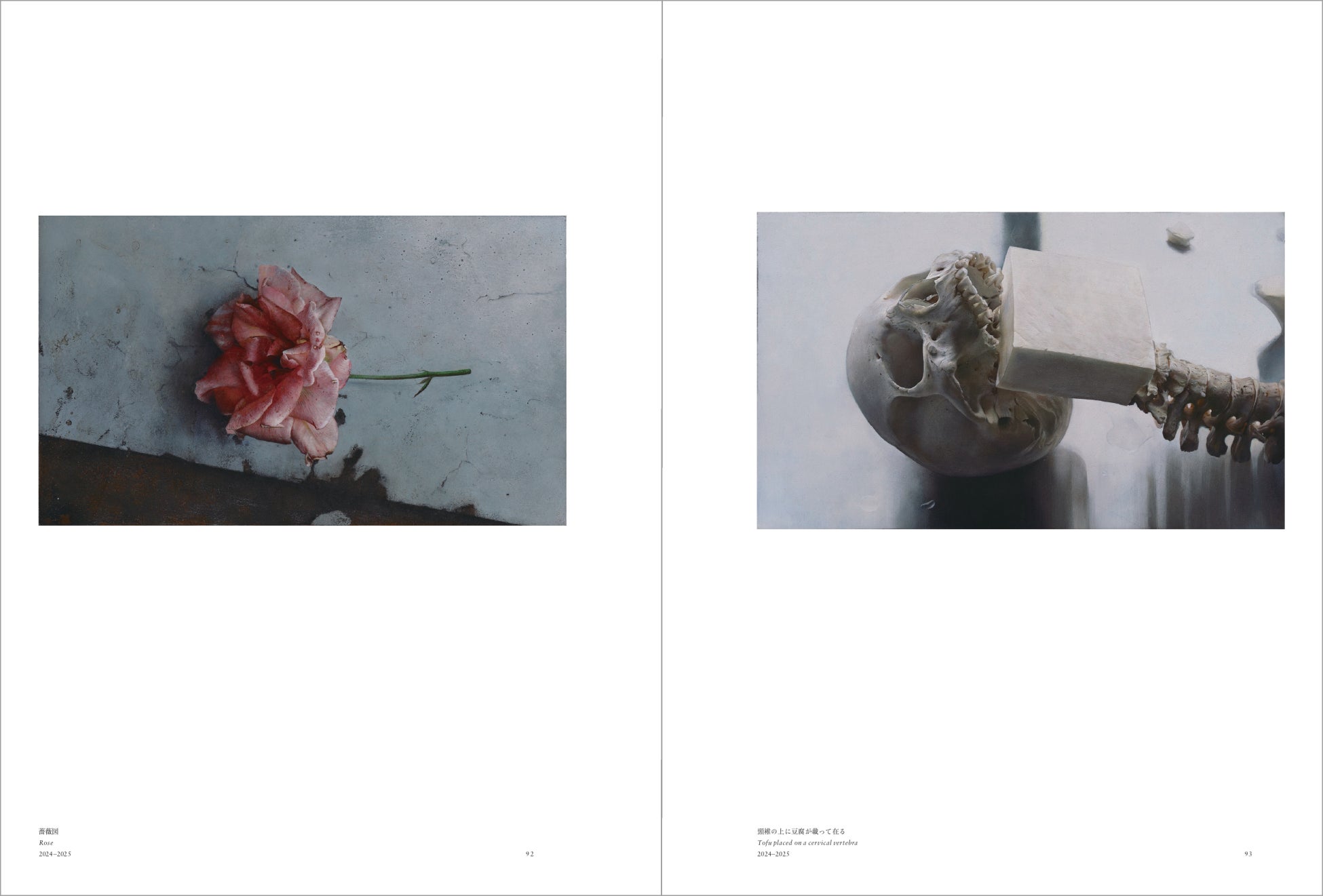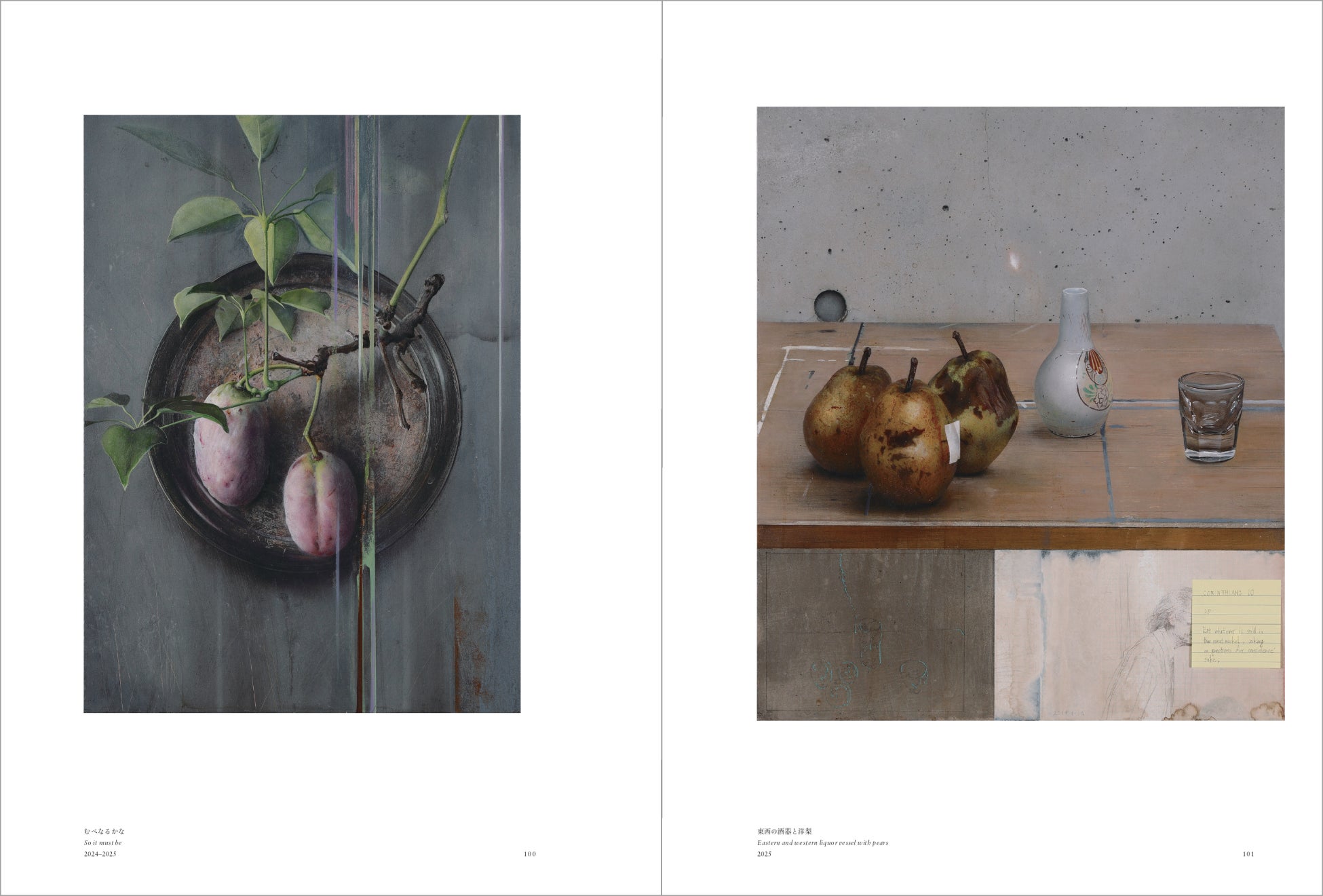 図録では、展覧会の5章構成に沿って諏訪の作品を紹介します。新作の静物画や展示風景の撮り下ろし写真、新作「汀にて」の制作過程を収めた記録写真など、豊富なビジュアルを掲載しています。展示構成を手がけた宮本武典による書き下ろしの解説とともに、展覧会の魅力を手元でも楽しむことができます。