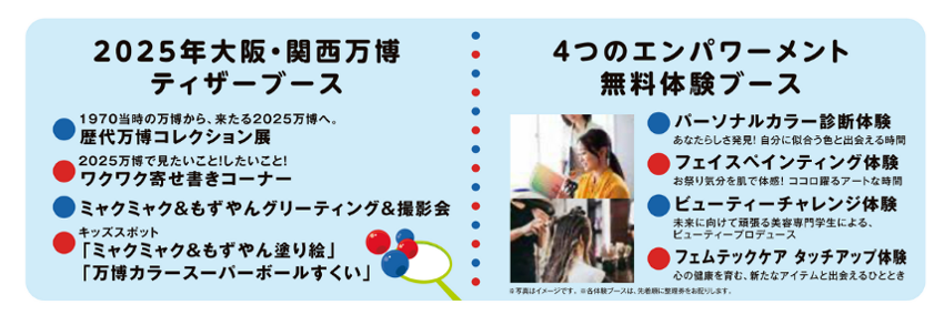 楽しく家事・育児に取組みたいパパに向けたトークイベントや、プレジデントウーマン編集長の木下明子氏による女性活躍推進をテーマとした講演、木下氏と大阪府男女いきいき事業者表彰受賞事業者とのパネルディスカッションを始め、女性の起業家等が出展するキラリマルシェなど、さまざまなプログラムがあります。また、2025年大阪・関西万博に関連したイベント(体験ブースやトークショー)も同時開催します。本イベントのフェムテックブースにてファミワンは展示協力します。