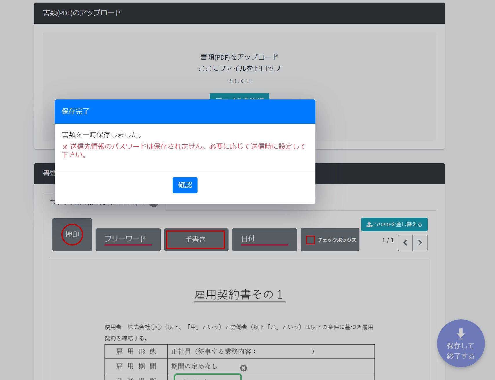 ※画面右下の保存して終了するを押下で一時保存可能です