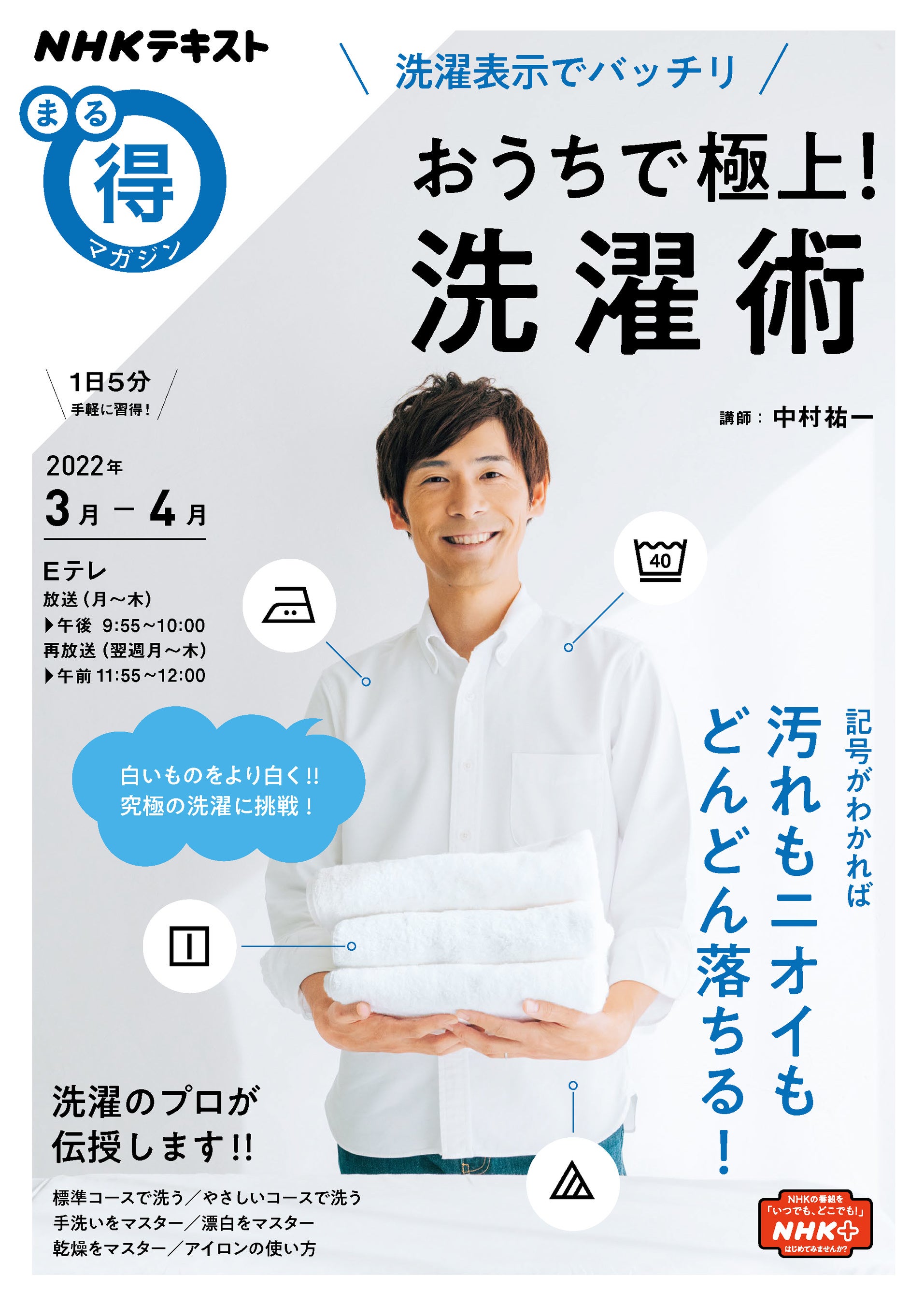 衣類についている「タグ」をチェックするだけで、見違えるほどの洗い上がりに! NHKテキスト『まる得マガジン 洗濯表示でバッチリ おうちで極上!洗濯術』、2月21日(月)にNHK出版より発売。
