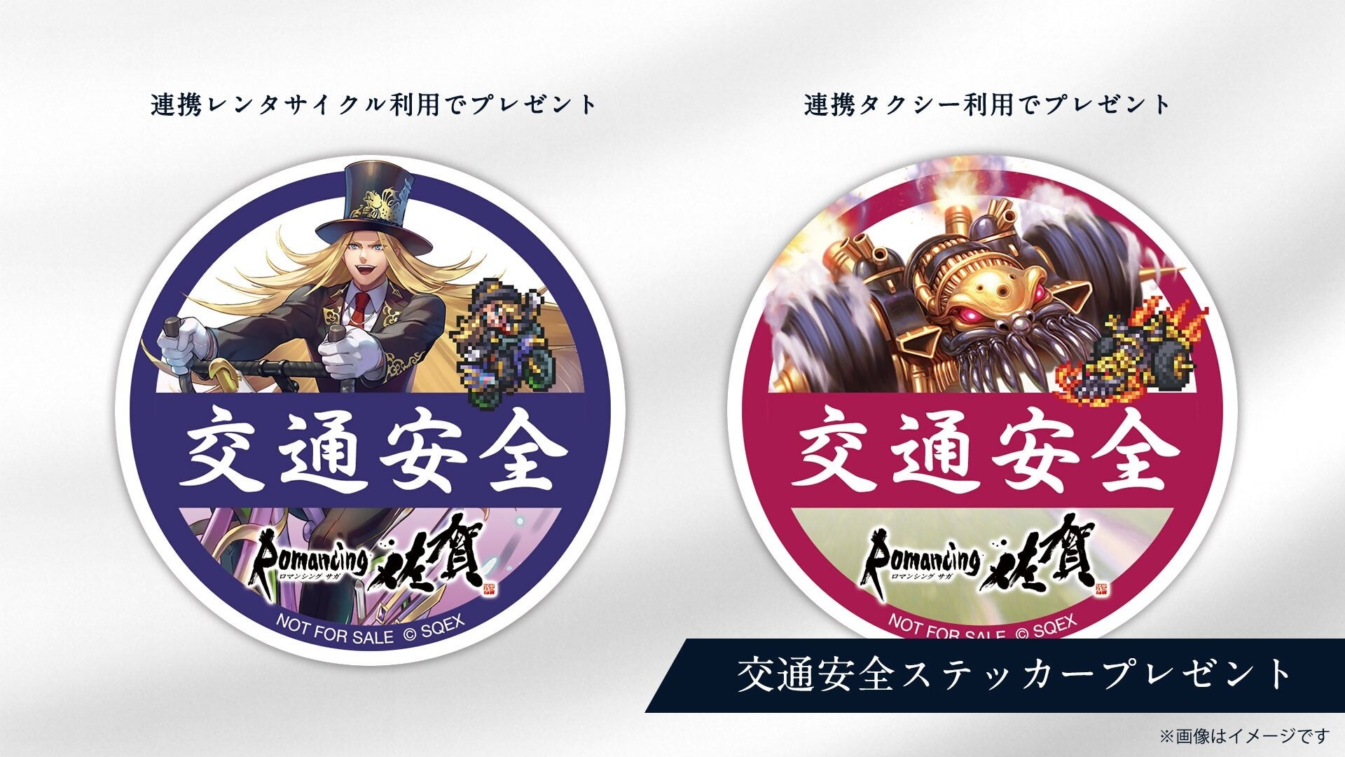 伊万里・有田の移動サポートとして、レンタサイクル・タクシーと連携したキャンペーンを実施します。ご利用時にロマ佐賀のパンフレットを提示いただいたお客さまに、交通安全ステッカーをプレゼントいたします。