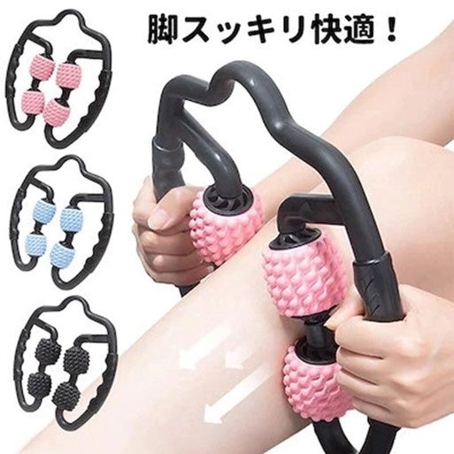 両サイドのハンドルが持ちやすく、可動域が広いため太さの異なる部位もしっかり包み込みながら、もみほぐしたりすくい上げたりしながら脚全体をマッサージできるアイテム。360度回転する4つのローラー表面にある突起が程よい刺激を与えながら、力をかけずにローラーを転がすだけのお手軽ケアができます。首・肩・腕にも使える便利なオールラウンダーです。