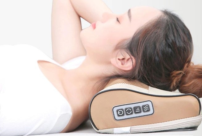 人肌くらいの温感ヒーター搭載で首・肩・肩甲骨を温め、枕の形状に沿って首を伸ばしながら揉みほぐしてくれる首・肩専用の温熱枕。上下逆にして、マッサージ機能のついていない枕の低い面に首を乗せれば、通常の睡眠用としても使用できます。