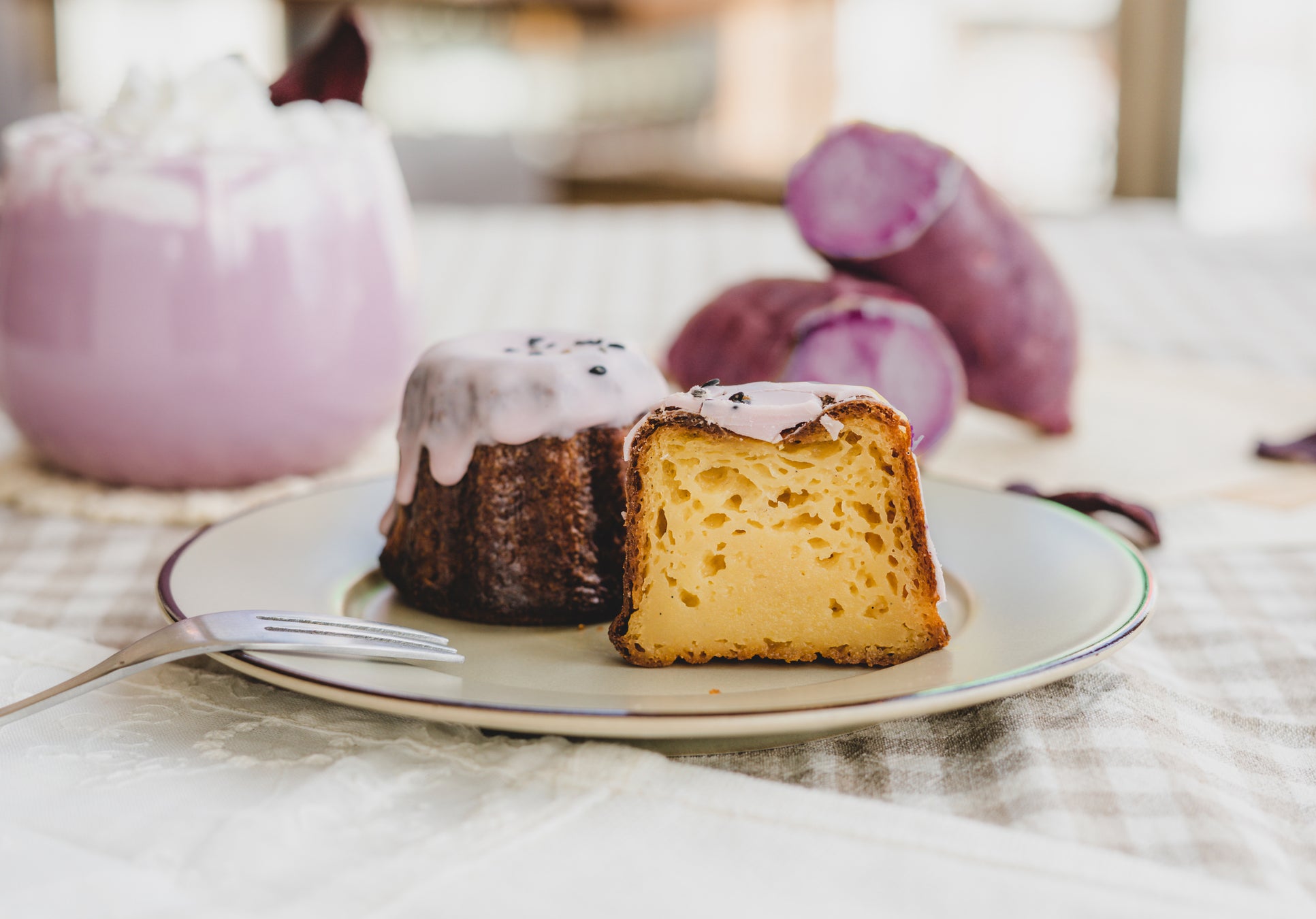甘味の中に抹茶らしい品のある苦味を感じる、静岡県産抹茶を使った「抹茶カヌレ」、香ばしいほうじ茶と生地の甘みが相性抜群の静岡県産ほうじ茶を使った「ほうじ茶カヌレ」、そして国産茶葉を使った香味が穏やかで優しい味わいの「和紅茶カヌレ」。