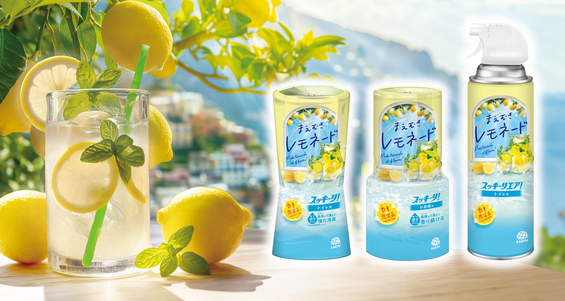アース製薬、暑い季節にぴったりのフレッシュで爽やかな『スッキーリ! まえむきレモネード』を数量限定販売
