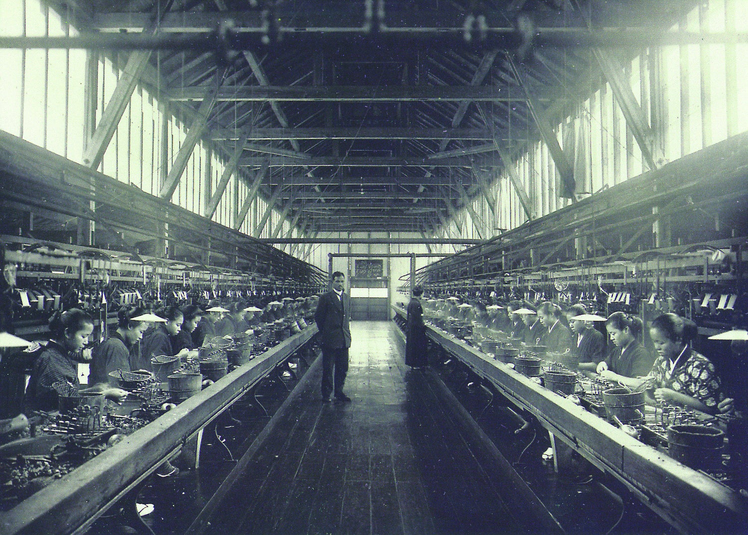 大正6(1917)年、グンゼの経営理念、従業員教育および地域貢献などが評価され、民間企業として初の貞明皇后による行啓をたまわりました。