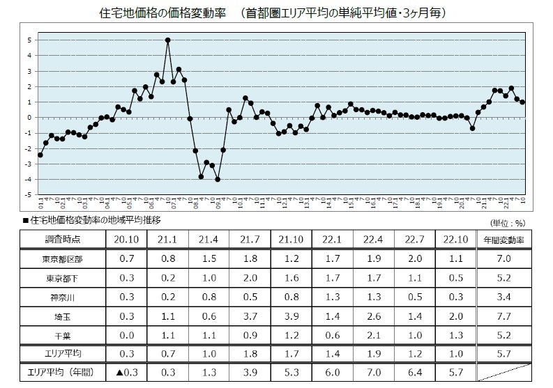 野村不動産ソリューションズ実勢調査 第136回2022年10月1日時点首都圏「住宅地価格」の動向