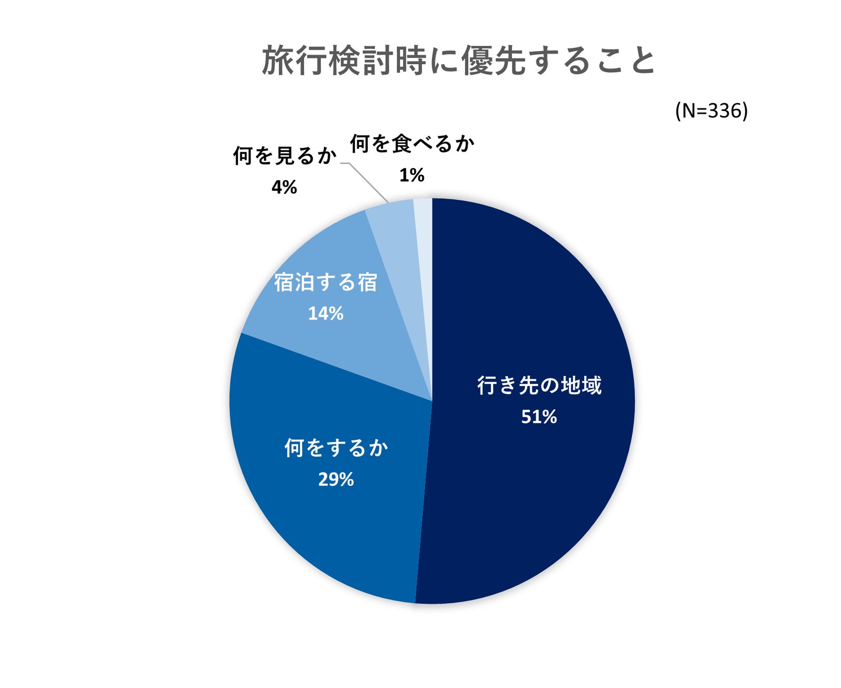 最も多かったのは「行き先の地域」で約半数。次に「何をするか」が約3割でした。旅行の際は、まずは行きたい地域を決めて、そこで何をするかを考えてから計画を進める人が多いという結果でした。