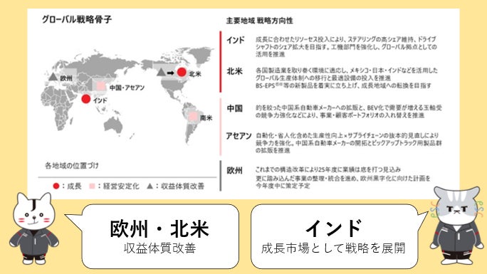 ジェイテクトは、第二期中期経営計画である2024年から2027年にかけて、グローバル体制の再構築による、経営・事業体制の強化を進めています。成長地域であるインド市場においては、成長に合わせたリソーセス投入を行うことで、自動車部品を中心に拡販をすすめていきます。
