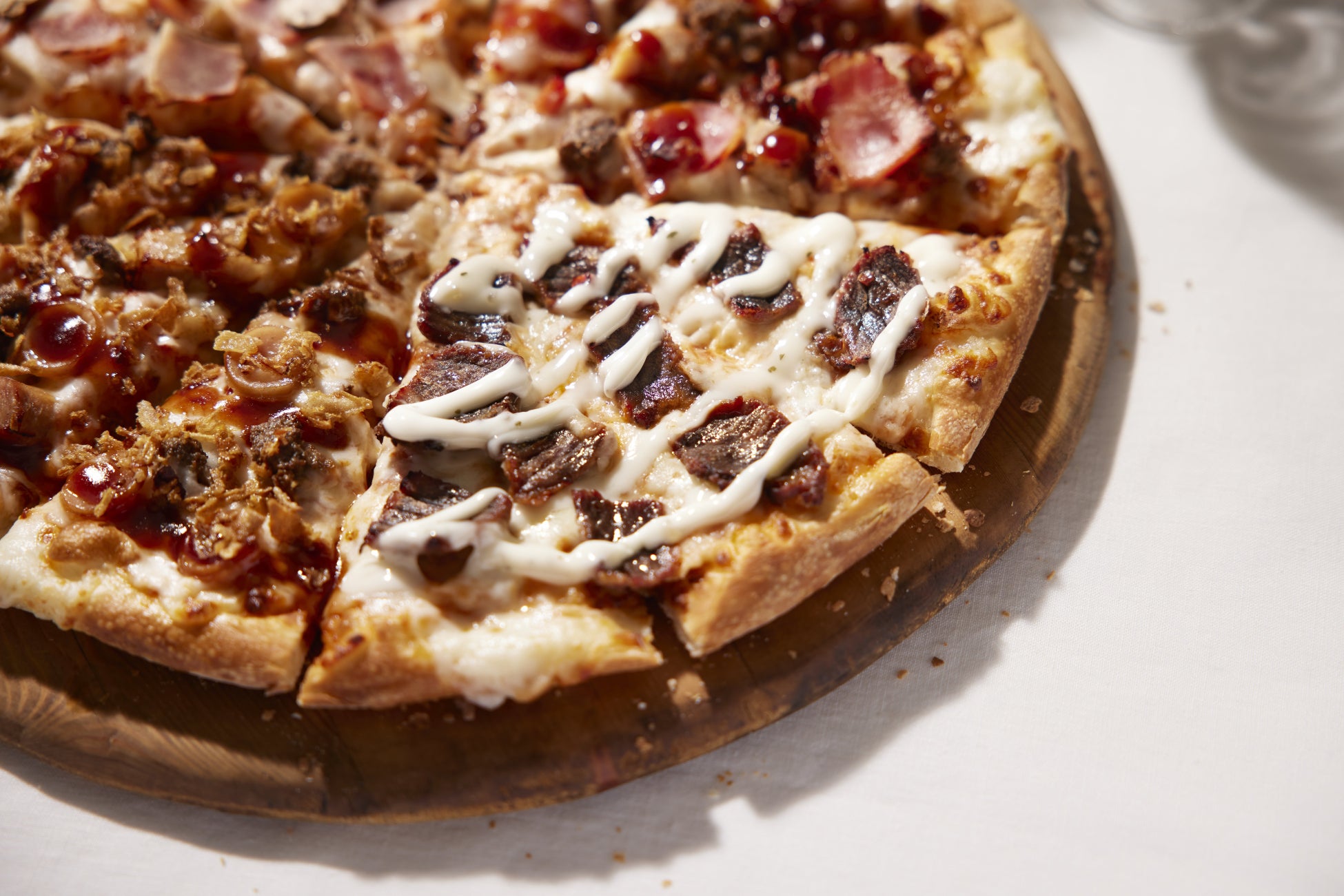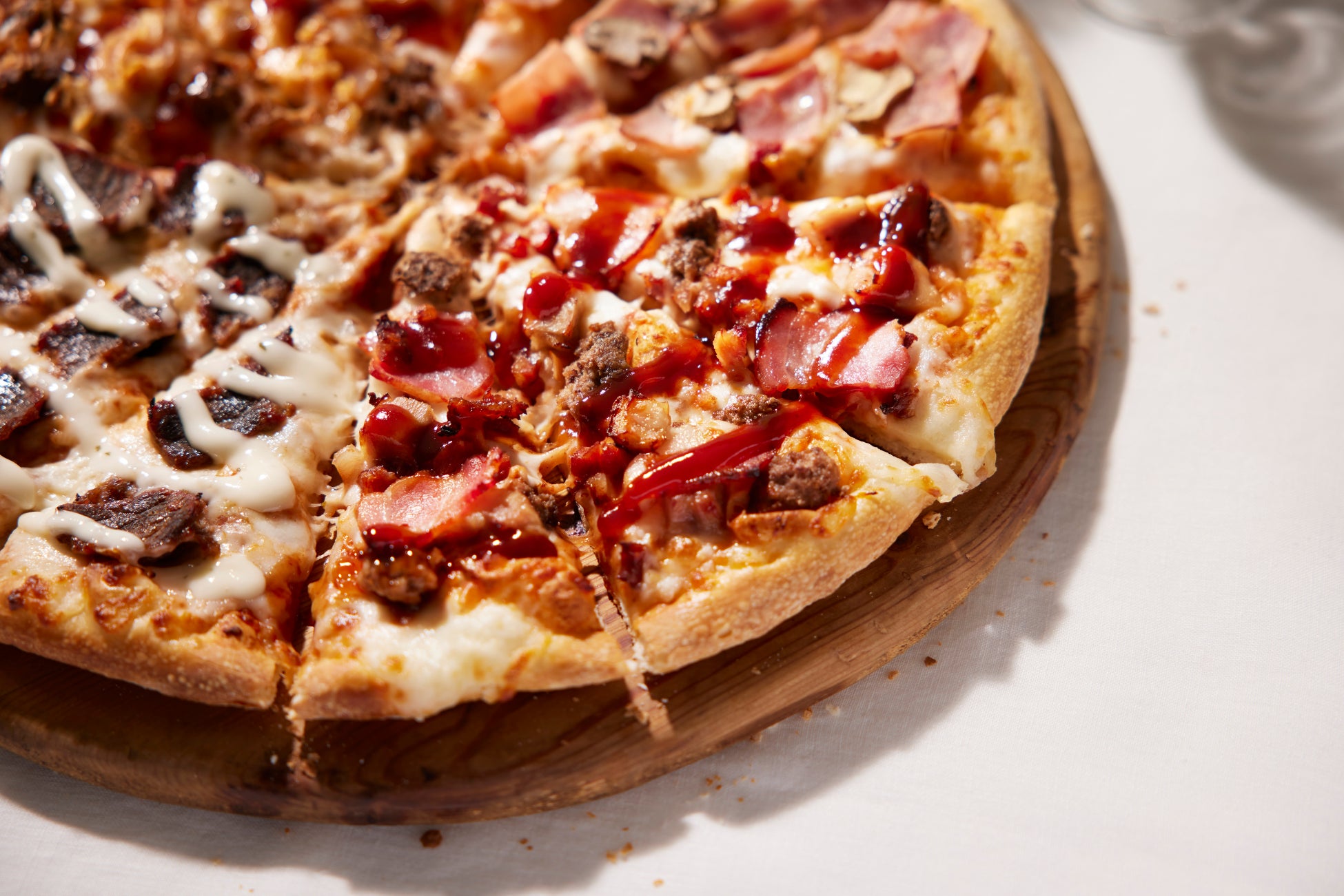 トッピング:トマトソース、ビーフパティ、ローストチキン、燻しベーコン、クリスピーベーコン、BBQソース