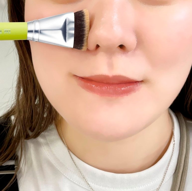 ブラシでファンデーションをムラなく広げたあと、水を含ませたアクアパフで軽くたたきこむことで、肌にピタッと密着。まるでプロの手で仕上げたような“水光ツヤ肌”を演出します。