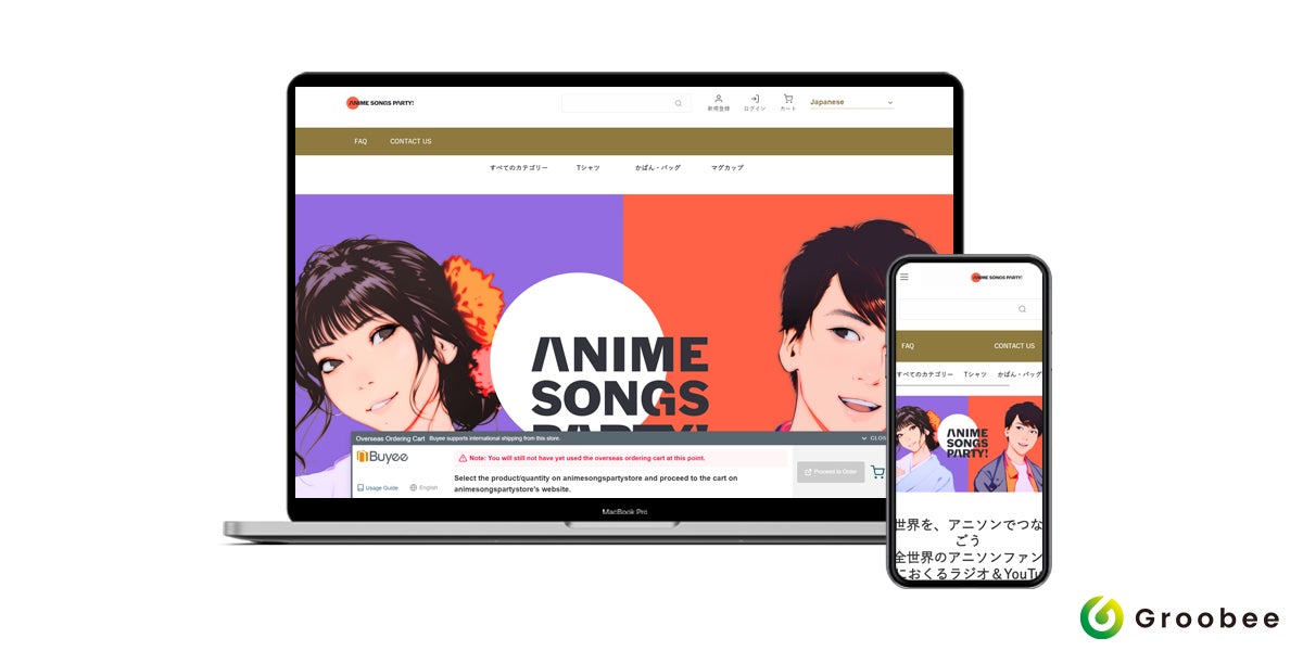 Groobee(https://groobee.com )はアーティスト・アニメやキャラクターのコンテンツに特化した、エンターテインメントに最適な機能が詰まったサイト構築サービスで初期費用0円からスタートできます。販売商品情報をいただければ、サイト上のクリエイティブ、CS対応から物流対応までGroobeeがサポートいたします。1つのブランド商材を取り扱う単独型のECサイト構築に加え、アーティストやコンテンツが複数存在する場合は、モール型でのECサイト展開も可能です。