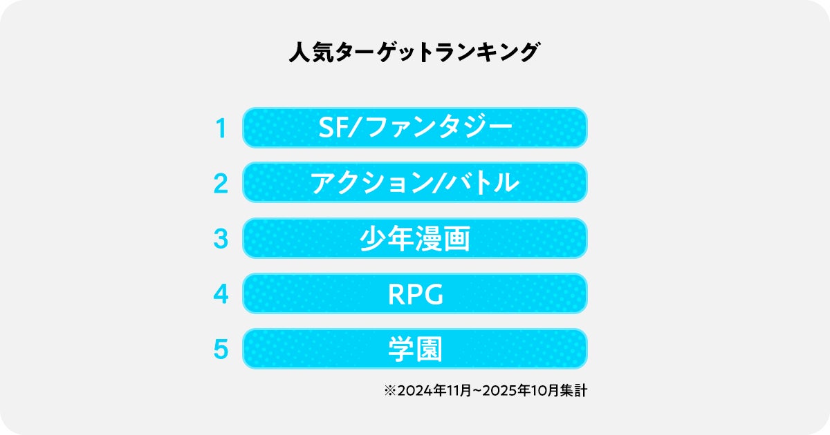 キーワードターゲティング、興味関心ジャンルターゲティングが好評。「SF/ファンタジー」「アクション/バトル」が人気のジャンル