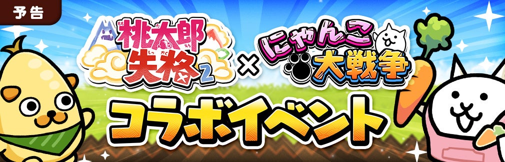 ポノス株式会社(本社:京都府京都市、代表取締役:辻子依旦、以下「ポノス」)はスマートフォン(iOS/Android)向けゲームアプリ『桃太郎失格』におきまして、『にゃんこ大戦争』コラボイベントの開催が決定しました。対象期間には、コラボ限定ガチャおよび限定ベジ丸が手に入るイベントを開催いたします。また本日4/10(月)より、ベジ丸たちをゲットできるイベント「豊作ウィーク」を開催いたしましたので、これをお知らせいたします。