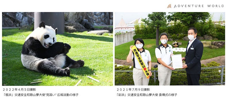 拝命にあたり、2022年7月11日(月)にパーク内で委嘱式を実施いたします。委嘱式では、これまで「交通安全和歌山夢大使」を務めたジャイアントパンダ「彩浜」への感謝状贈呈、並びに「楓浜」への委嘱状交付、和歌山県内各地で展開される「わかやま夏の交通安全運動」の広報活動を行います。
