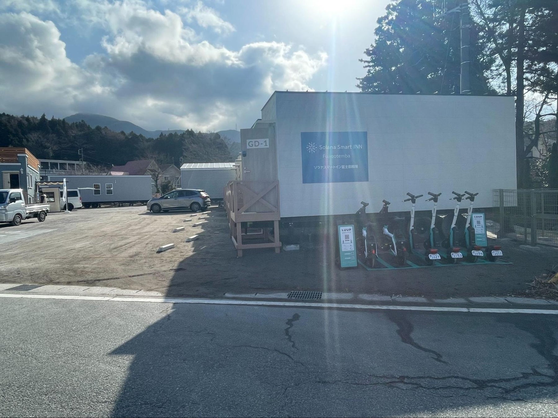 このたび、ソラナシリーズ 14 施設目となるトレーラーハウス型コンパクトホテル「Solana Smart INN 富士御殿場」を開業いたしました。本施設では、お客様ならびに地域の皆さまに、より自由で快適な滞在環境をご提供するため、電動キックボードおよび電動アシスト自転車のシェアリングサービス「LUUP」を導入いたします。