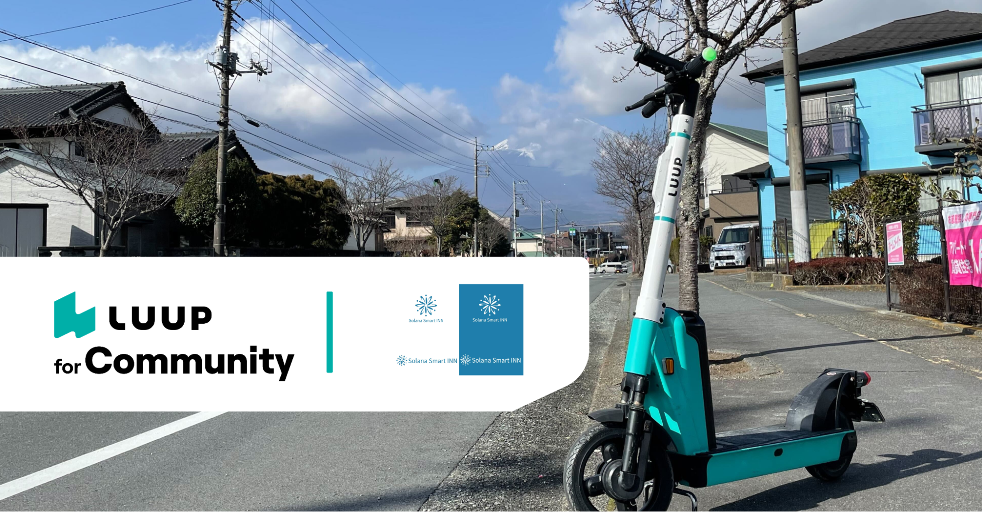 株式会社Luup(本社:東京都品川区、代表取締役CEO:岡井大輝、以下「Luup」)は、自治体・企業・団体が主体となり「LUUP」を地域に導入・運営いただけるサービス「LUUP for Community」の一環として、2026年1月20日(火)10時より、ソラナリゾート株式会社 (本社:東京都千代田区、代表取締役:佐竹彩、以下「ソラナリゾート」)が運営する静岡県御殿場市のホテル「Solana Smart INN富士御殿場」にて、電動キックボードや電動アシスト自転車などのシェアリングサービス「LUUP」を提供し、同ホテルでの試験運用に協力することをお知らせします。なお、ソラナリゾートの運営するホテルへの導入は、「Solana Smart INN成田空港」「Solana Smart INN富士山中湖」「Solana Smart INN富士河口湖」(※)に続き、4施設目となります。
