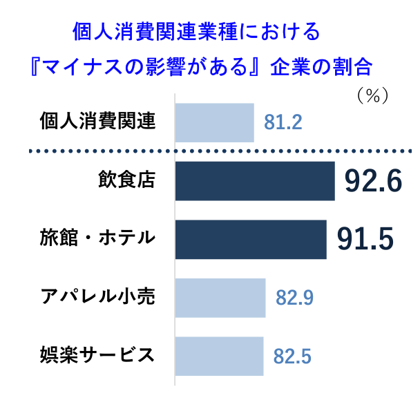 - 飲食店やホテルなど個人消費に関連する業種でマイナス影響続く