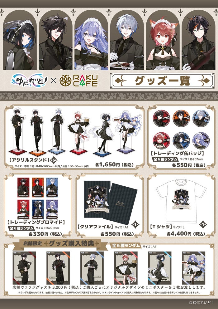 コラボカフェ店舗内にてオリジナルグッズを3,000円(税込)ご購入ごとに、A4サイズのミニポスター(全6種ランダム)をプレゼントいたします。