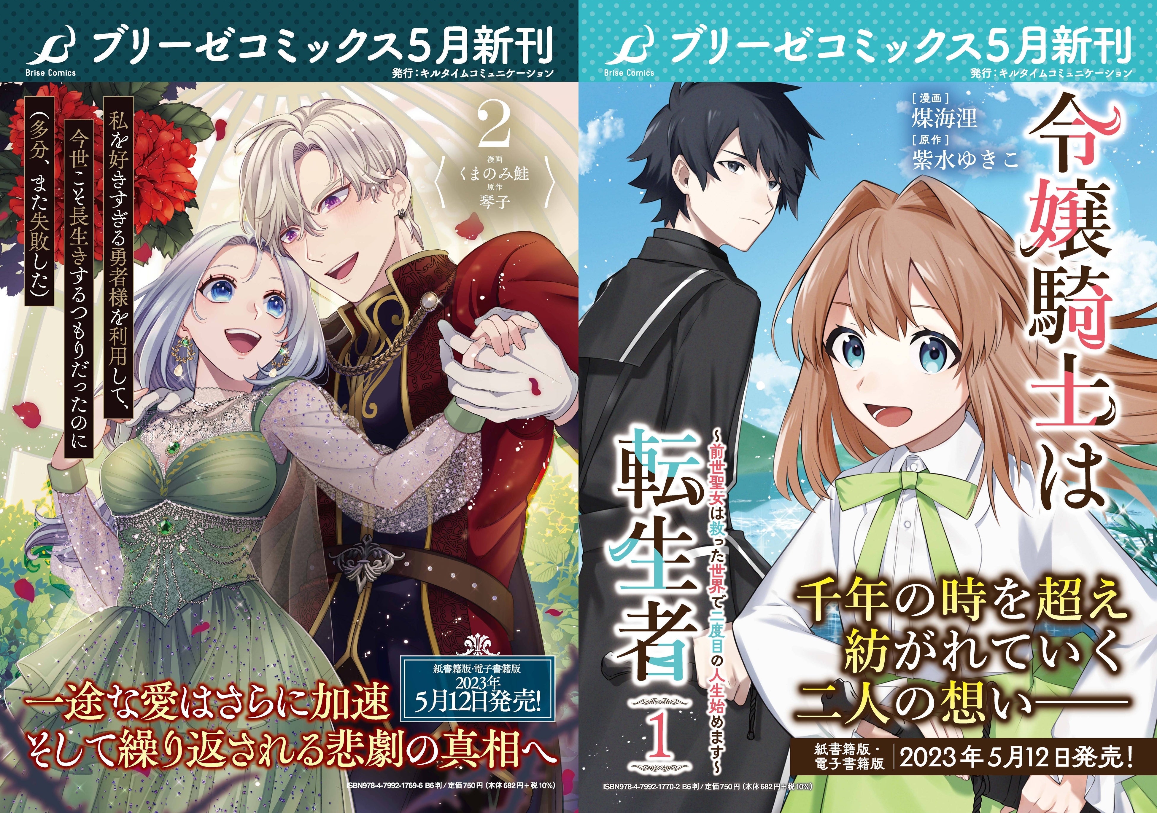 5月はボイスコミック動画も超話題!『私を好きすぎる勇者様を利用して、今世こそ長生きするつもりだったのに(多分、また失敗した)2』、「小説家になろう」発の異世界純愛ファンタジー、待望のコミカライズ『令嬢騎士は転生者 ~前世聖女は救った世界で二度目の人生始めます~ 1』の2作品が発売!