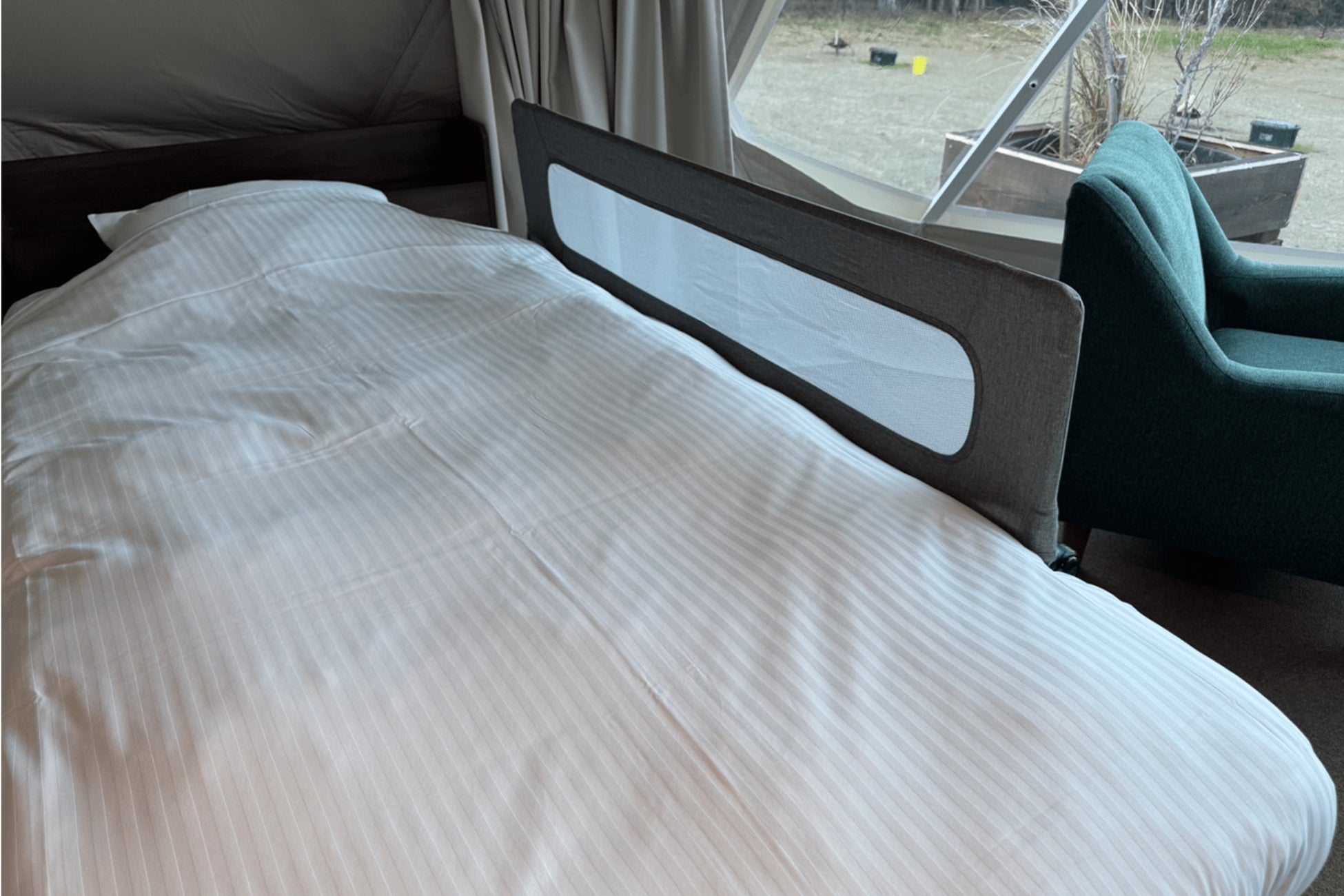 「Glamping My Dear,」では、ベビーバスやベビーチェア、ベッドガードなどの赤ちゃん向け設備・備品を完備。また、スタッフによるサポート体制も充実しており、ご家族がリラックスして過ごせる空間を提供します。さらに、広々としたテントやプライベートエリアでは、小さなお子様が安全に遊べる設計が施されています。