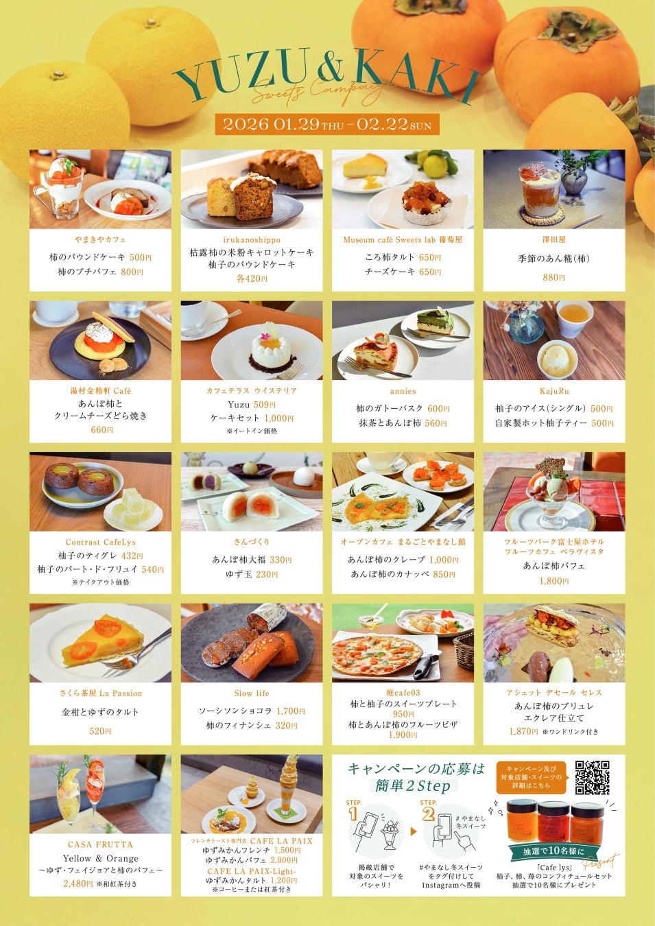 名称:やまなしの旬をスイーツで~冬を彩る柚子・柿やまなしスイーツキャンペーン~
