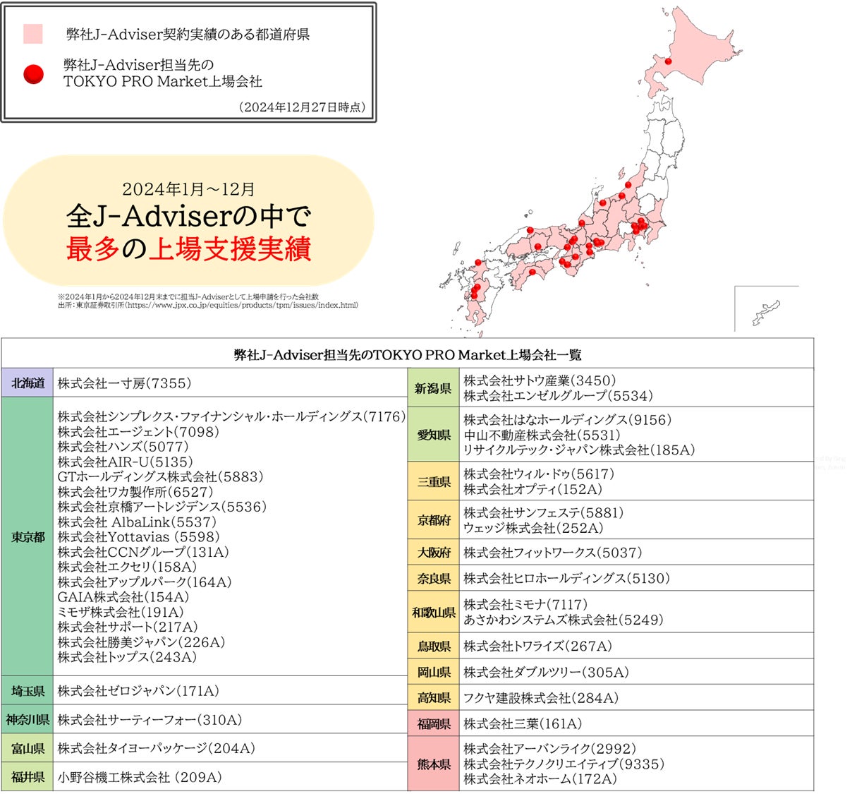 また、2024年12月には、福岡証券取引所が運営するプロ投資家向け市場、Fukuoka PRO Marketの上場指導・審査を行うF-Adviser資格も取得いたしました。