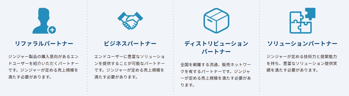 本プログラムは、販売実績や技術力といったパートナー企業の強みや事業モデルに合わせて、最適な協業形態を選択できるよう、4つの認定カテゴリーを設けています。 また、パートナー企業の営業活動・販売活動を支援するための仕組みを整えています。