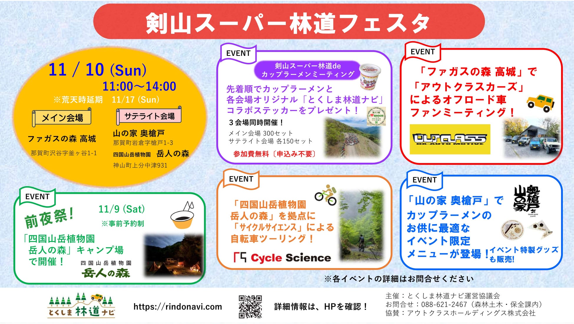 日本一の長さを誇り、オフロードの聖地と呼ばれる剣山スーパー林道において、徳島県や市町村などで構成する「とくしま林道ナビ運営協議会」が、民間事業者との官民連携イベントとして「剣山スーパー林道フェスタ」を開催します。