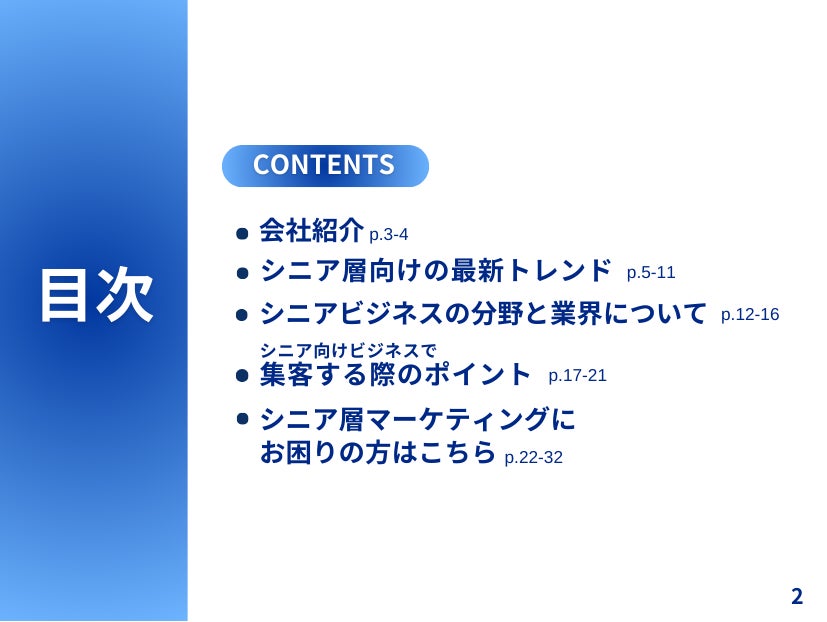 本レポートでは、シニア層の集客に課題を感じている方向けに効果的なマーケティング手法を取り上げています。また、シニア向け市場に影響を与える最新トレンド(2025年4月版)についても紹介しています。