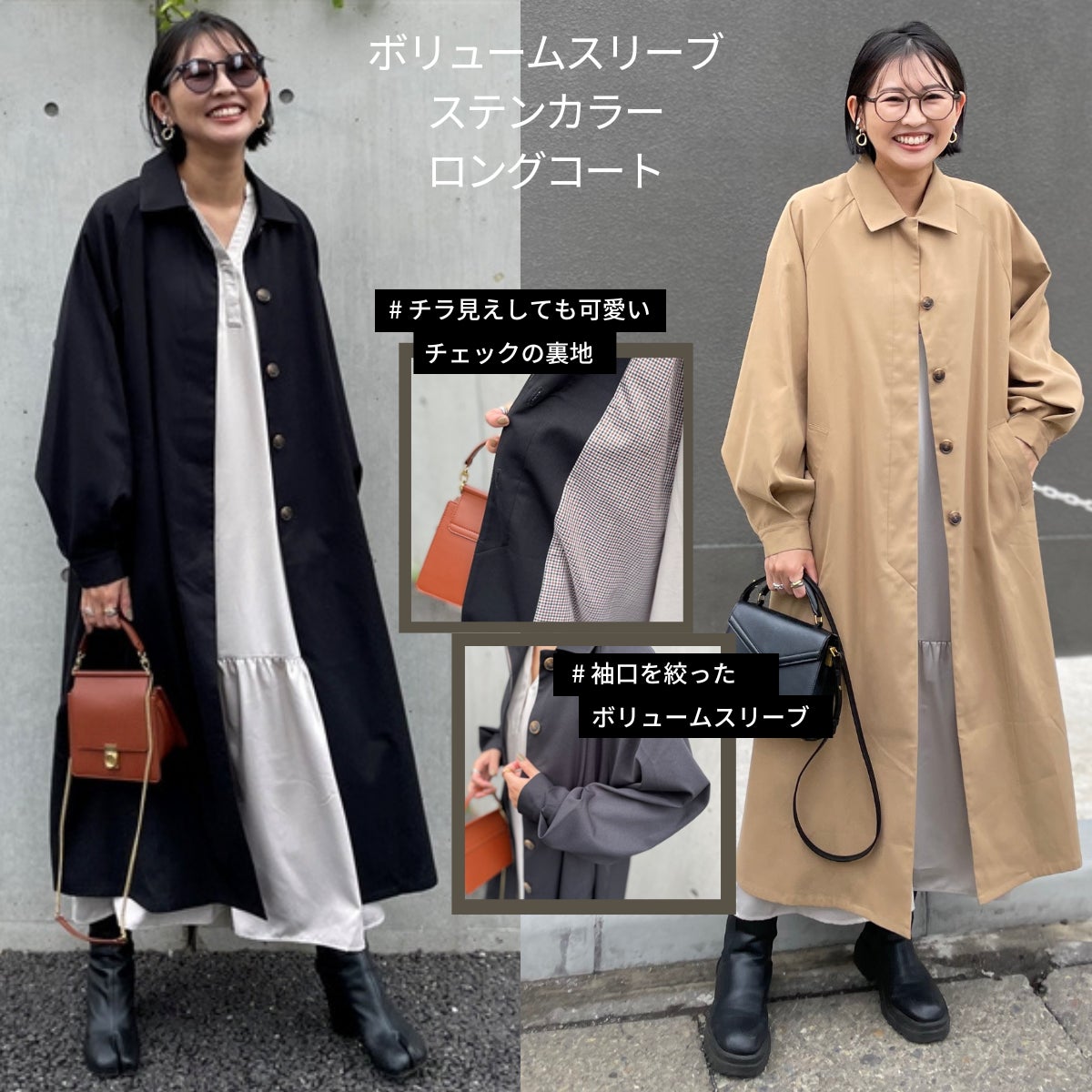 商品名:ボリュームスリーブ ステンカラーロングコート【ニッセン×うえむらあやの】