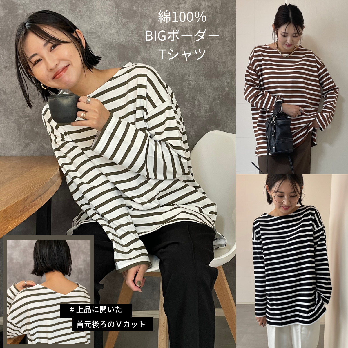ドロップショルダー&オーバーサイズがこなれ感と華奢見えを演出するボーダーTシャツ。