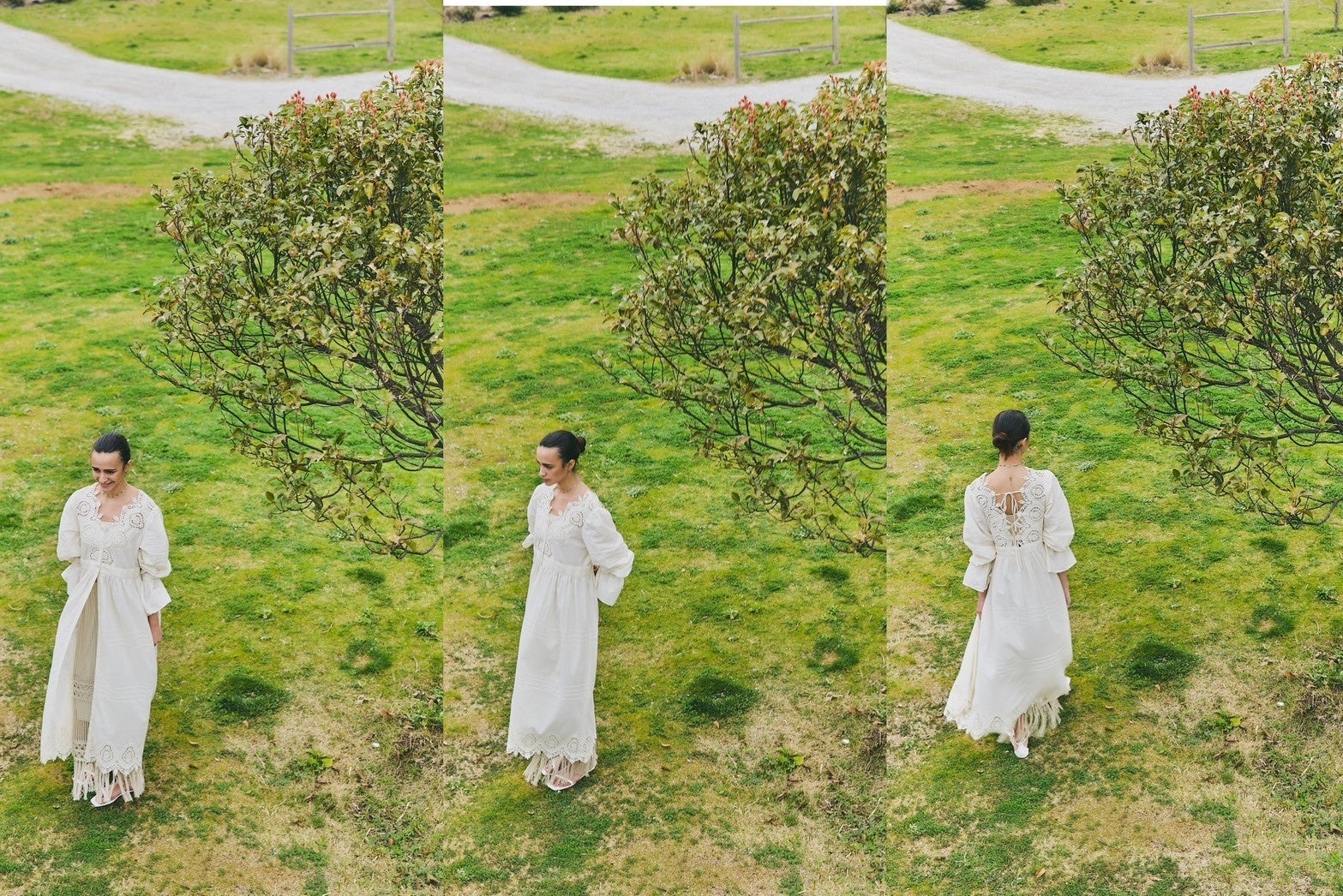 ヴィンテージワンピースのような風合いにこだわり、レースや、ピンタックで本格使用に。長袖ですが、涼しい素材なので、ロングシーズン着用可能。